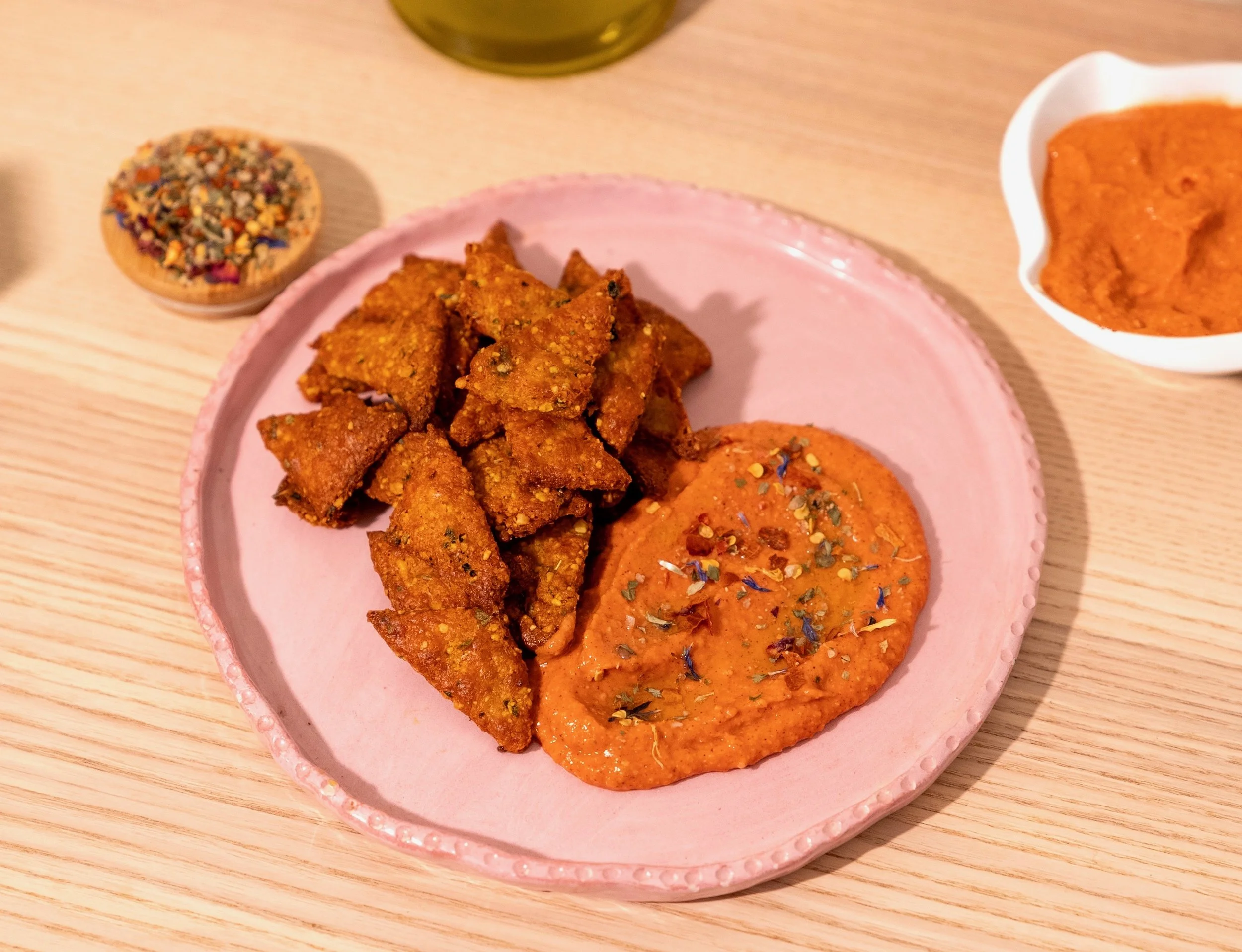 Cheesy Almond pita chips with seaweed & spices (GF)